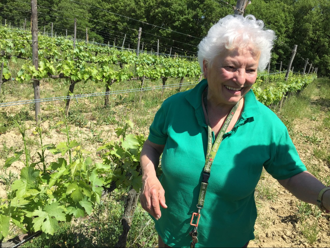 This is a photo of Anna Ginotti. She and her husband Ludovico own and operate a small winery in Montalcino, Italy. We met her in May 2015. Anna & Ludovico are from Siena and were getting close to retirement age when they took on the challenge of owning a winery. Poggiarellino is a small winery which produces great Brunello di Montalcino. Amy and I felt ourselves fortunate to visit this Italian couple and their winery. As we walked through the vineyards, Anna expressed a profound love for the property, the soil, the vines, and the wine produced from them that nearly brought tears to our eyes. We were taken into their home where they shared a bottle of Brunello and homemade bread with us. It was truly an amazing experience. We left feeling like we had made a strong and lasting connection not only with the owners, but with the winery itself. Now, when we drink their Brunello we feel their love and and the beauty of their winery. It makes each glass of Poggiarelino wine very special for us. The picture of their home on the label reminds us of that wonderful afternoon.